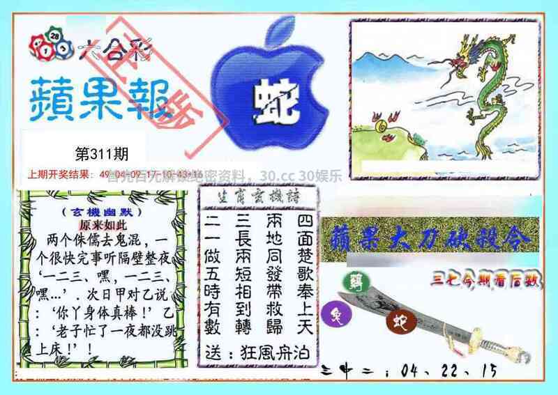 | 308-312期 | 01 09 15 18 19 20 24 30 38 44 |
