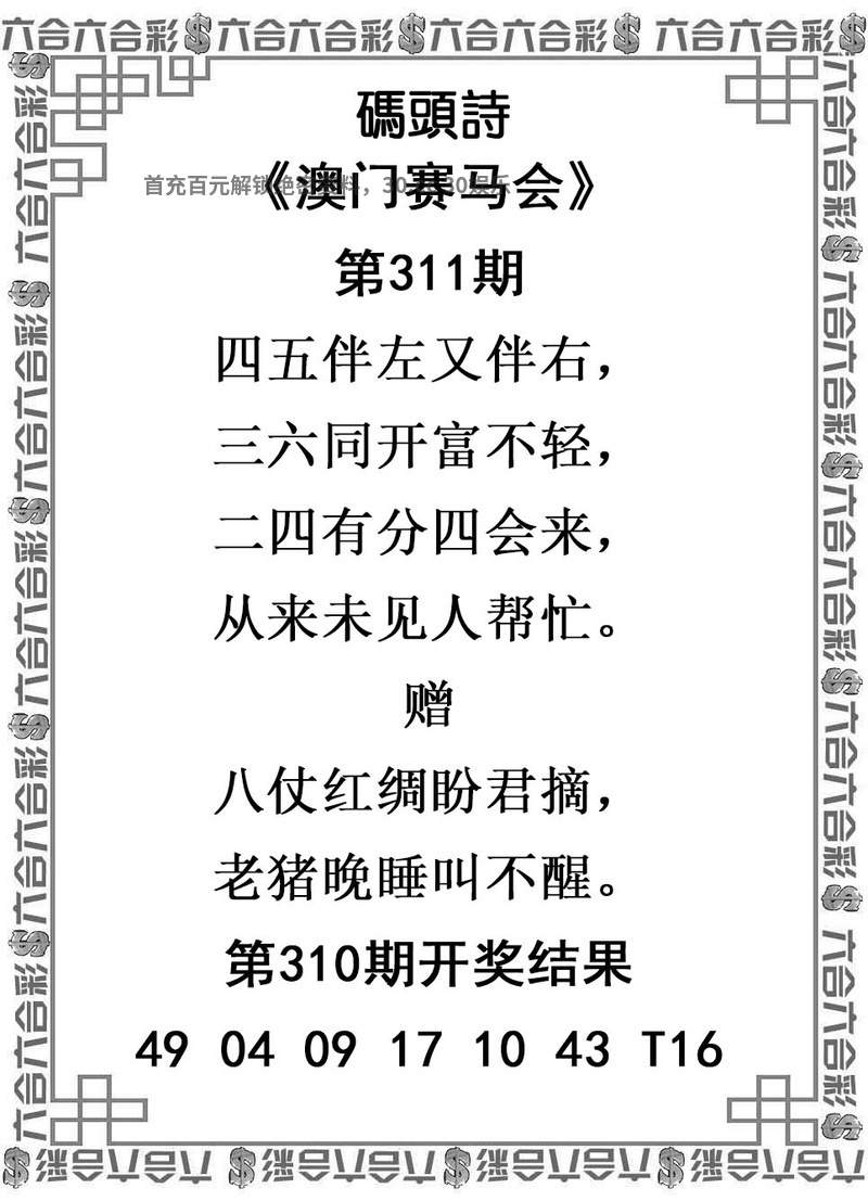 | 310期 311期 | 鸡蛇羊狗+04.10.34.40 | 开虎16 开蛇37 |