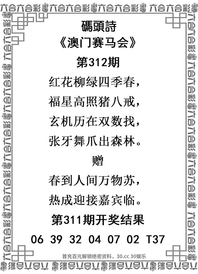 | 316期:澳门芳草地【二肖⑤码】已公开! |